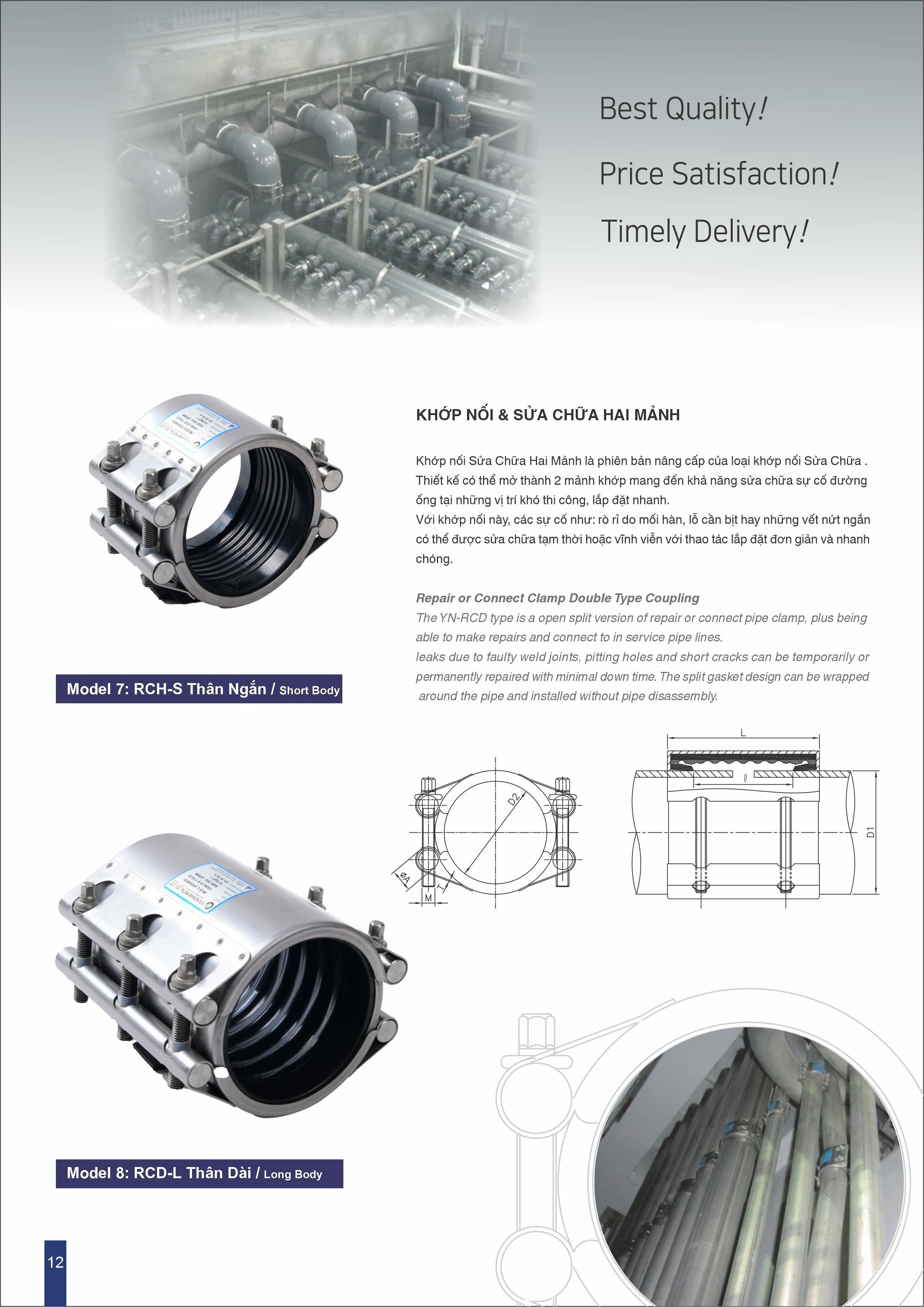 • Có thể nối kết tất cả các đường ống như: ống nước thải, ống dẫn nước, ống nước cứu hỏa, ống cấp nước, ống cấp nước nông nghiệp, ống cáp điện, ống bê tông hume (loại ống thép cao cấp cứng như bê tông), ống nhựa PVC, FRP (nhựa cốt sợi thủy tinh), v.v..