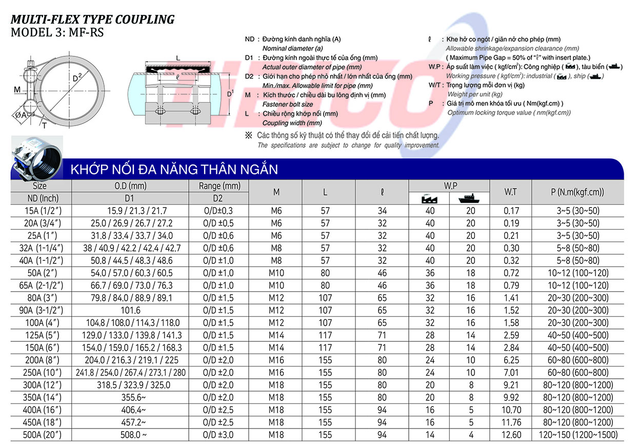 – Đường kính định danh(O.D):15.9mm-21.7mm